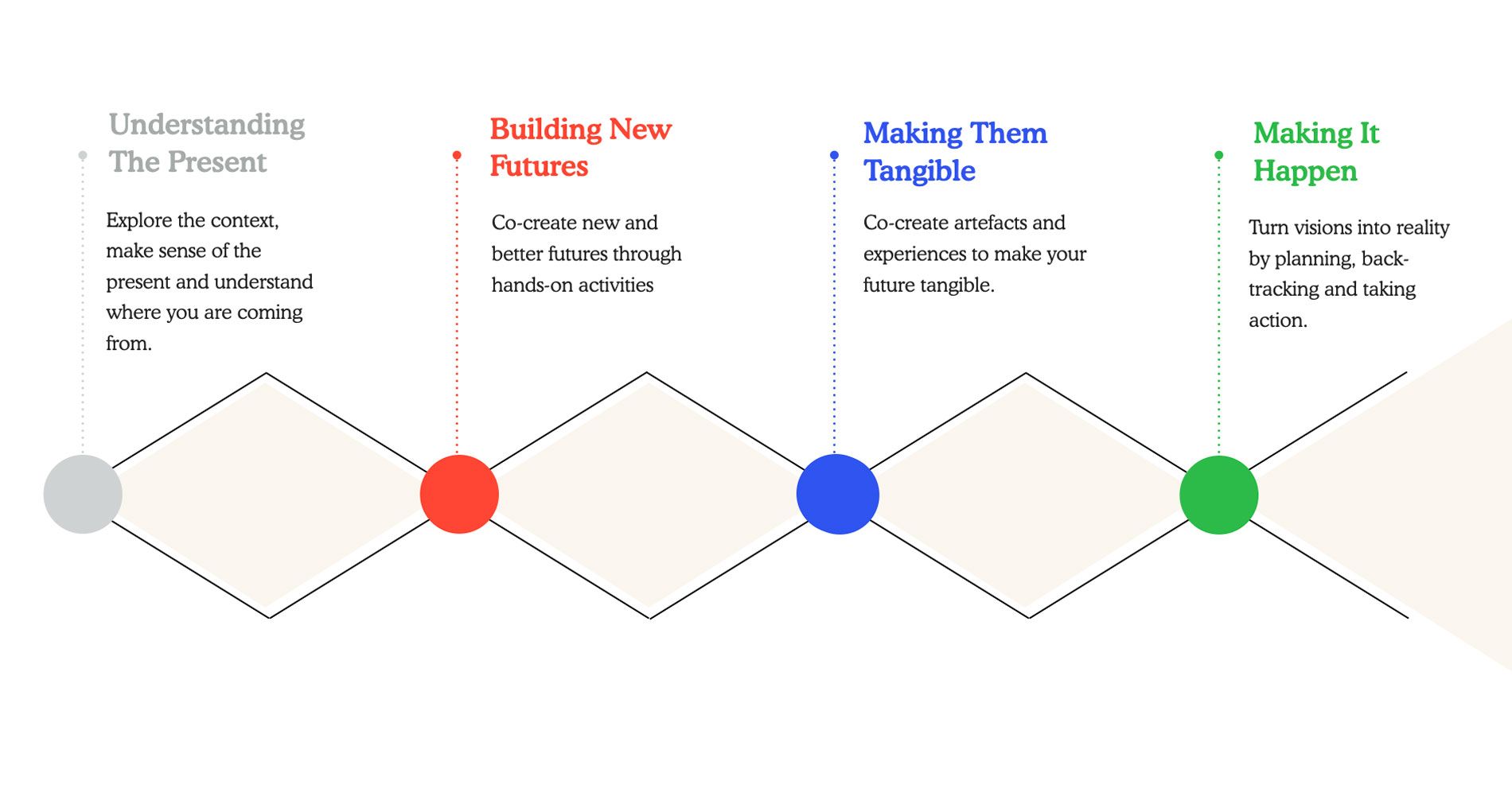 The easiest way to get started is to try our fun, informal half-day session with your team. That will give you and the team a taste of what futures thinking and doing could look like. Check out our Futures Starter Workshop.